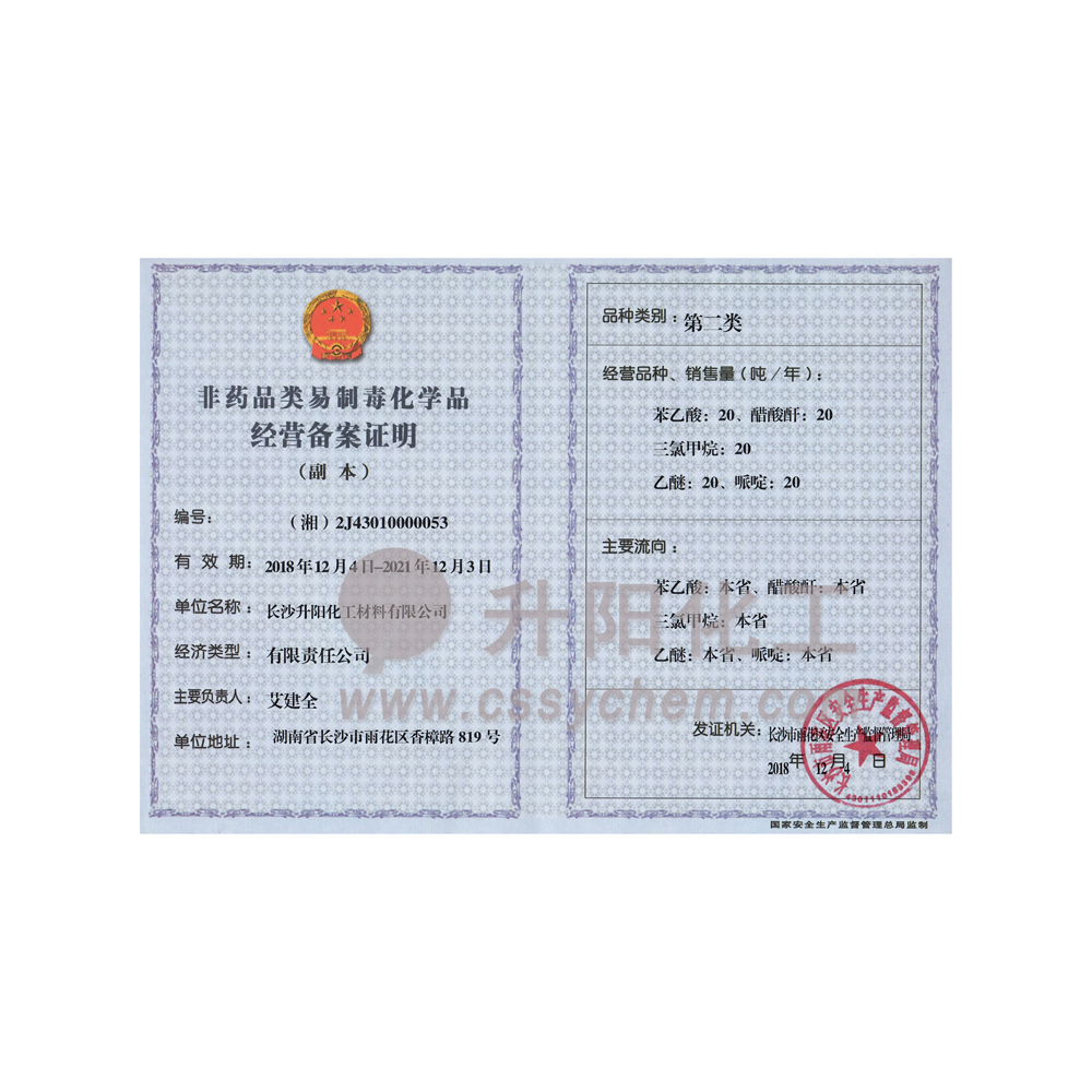 第二類易制毒化學(xué)品經(jīng)營許可
